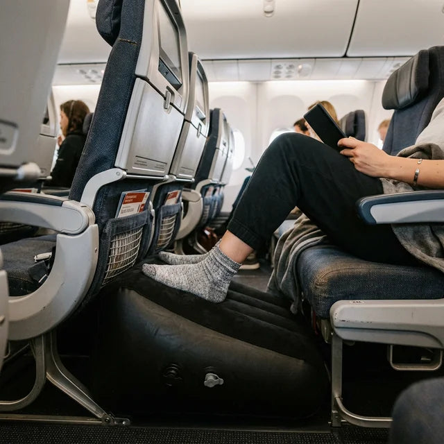 Le repose-pieds avion fonctionne aussi en train, en bus ou en voiture : un seul accessoire pour tous vos trajets longue distance.